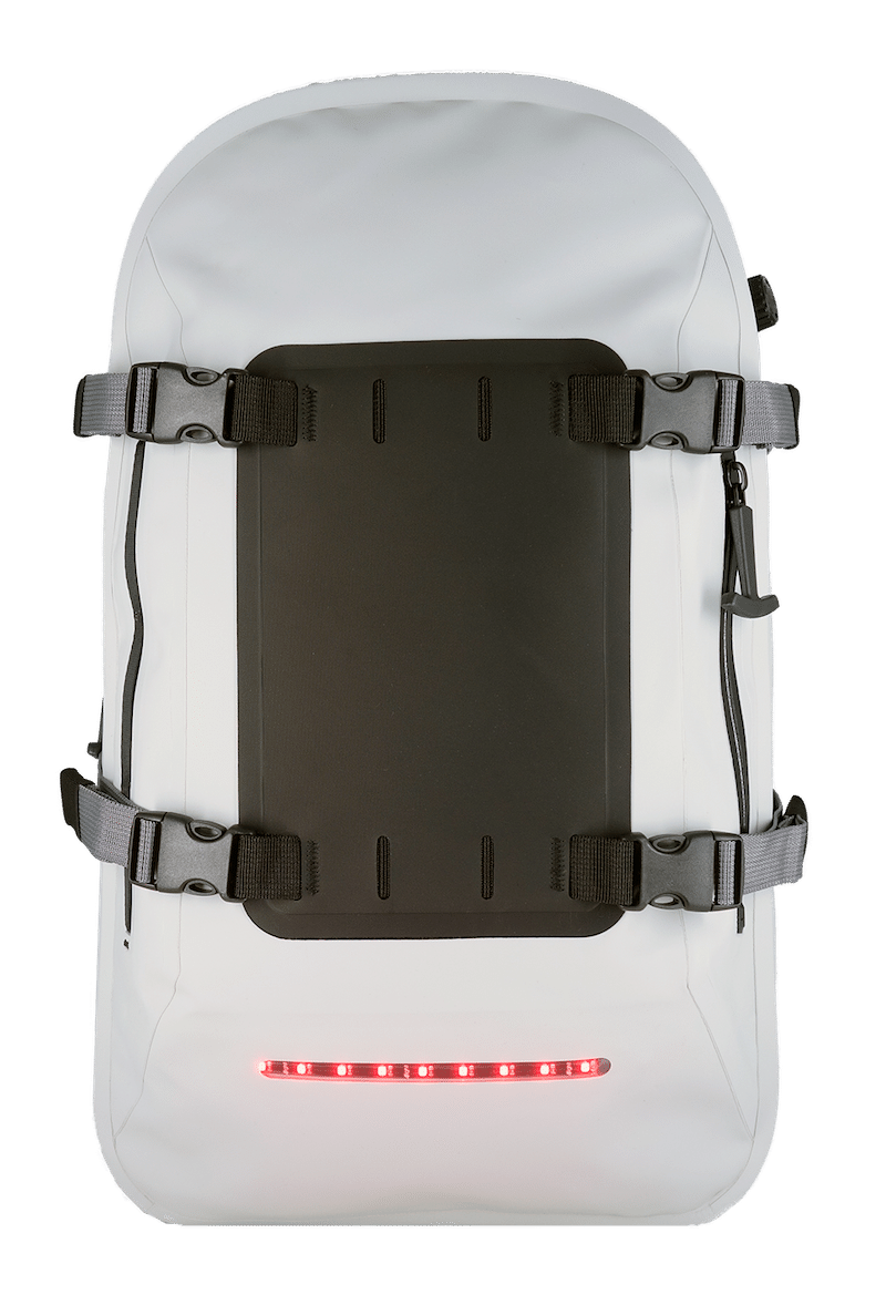 Repun takana on punaiset LED-valot, jotka toimivat pyöräillessä takavalona. Etupuolen kantohihnoissa on puolestaan keltaiset ja valkoiset LED-nauhat. Tämä lämpimän ja kylmän valon yhdistelmä maksimoi näkyvyyden pimeässä. Kantohihnojen suojaläpillä voidaan säätää valon määrää tarkoituksenmukaiseksi ja myös ehkäistä repun kantajan häikäisyä.